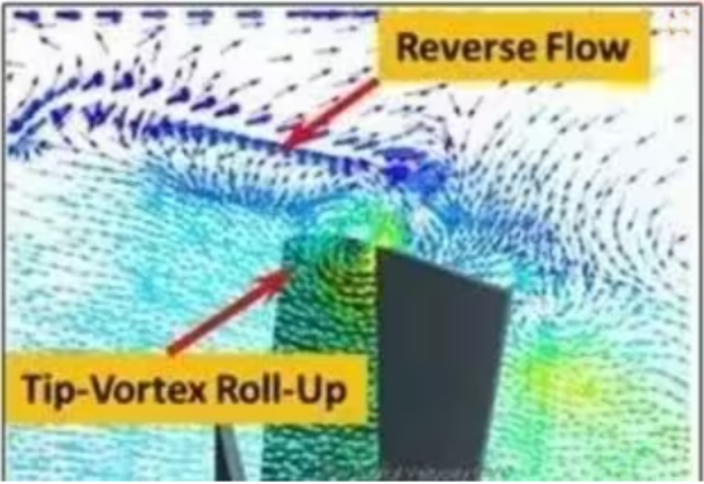 扇葉尖端效應(溫區中間風速低,兩側風速高)