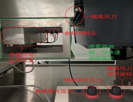 2、每周清理一次助焊劑箱抽屜內鬆香殘留物,助焊劑箱上端過濾網,助焊劑噴頭外表擦拭幹淨。