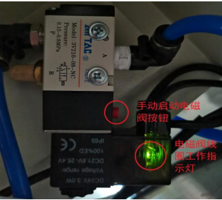 解決辦法:開啟手動噴霧後,電磁閥線圈會供電亮燈,首先檢查電磁閥24V直流供電是否正常,無供電需要查看圖紙檢查繼電器或PLC輸出。供電正常電磁閥不工作則更換電磁閥或電磁閥線圈