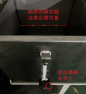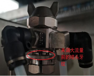 再通過逆時針擰鬆噴頭底蓋,從而加大噴頭流量,同時可以調大噴頭頂針壓力減壓閥,偏低時氣壓太低無法噴出助焊劑。另還需要檢查助焊劑箱助焊劑液位有沒有達到一定的高度,沒有水壓助焊劑無法流到噴頭那邊,助焊劑開關球閥是否開啟等基本操作。